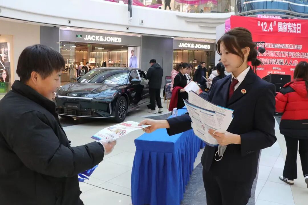 为大力弘扬宪法精神,推动宪法全面贯彻实施,在第十二个国家宪法日来临之际,站前区人民检察院与区司法局、区法院、区公安分局、区教文旅局等部门到万达广场开展“12·4”主题普法宣传活动。