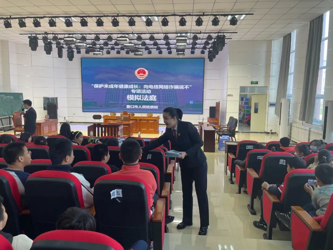 为提高未成年人防范电信网络诈骗能力,加强未成年人网络保护,近日,营口市站前区人民检察院与营口市人民检察院未检部门来到营口市站前区青年小学南开分校,开展防范电信网络诈骗公开课堂及模拟法庭活动。